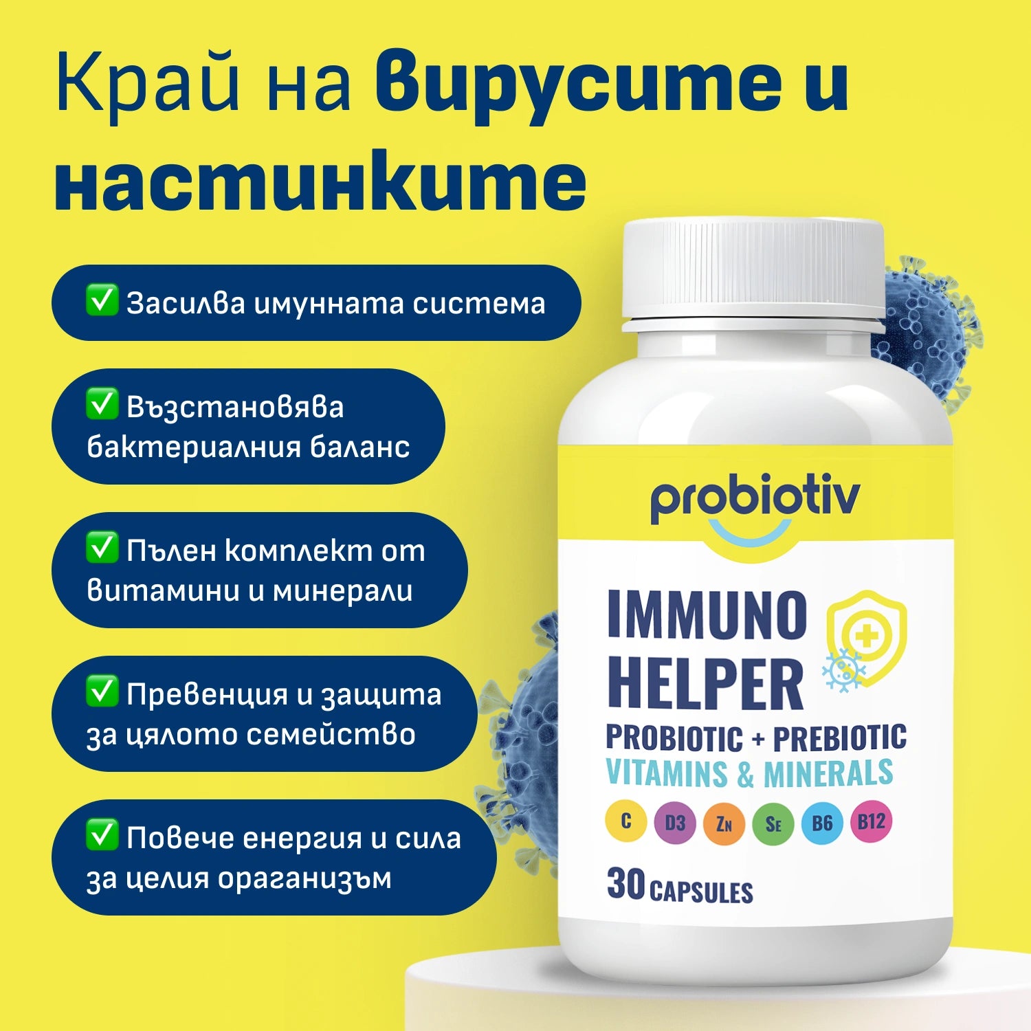 Probiotiv създава научно разработени решения, които подкрепят здравето, енергията и увереността всеки ден. Нашите формули комбинират висококачествени активни съставки и съвременни изследвания, за да подпомагат естествения баланс в организма — от храносмилането и женското здраве до имунитета и комфорта. Всеки продукт е създаден с внимание към нуждите на тялото, за да достави реални, осезаеми резултати и по-добро ежедневие. Вашето здраве, лекота и самочувствие са нашият основен приоритет.